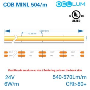 Single Color LED Strip COB MINI 504LED/m 5m 24V