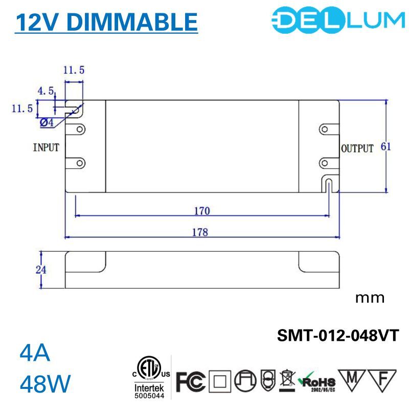 Triac dimmable constant voltage LED driver SMT-012-048VT, 12V (48W)