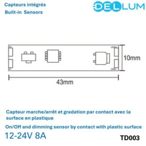 Built-in On/Off and dimming sensor by contact with plastic surface TD003